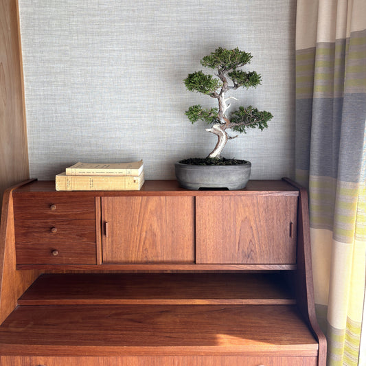 一点物の盆栽をセレクトしています。 赤松を中心に、幹の動きや樹形の美しさを楽しめる盆栽です。時間を重ねた幹や樹皮の表情は、一つとして同じものがありません。 和の空間はもちろん、北欧家具やミニマルなインテリアとも自然に調和します。 リビングや玄関など、空間に静かな景色をつくるインテリア盆栽としてもおすすめです。 Mata,では、空間の中で自然を感じられる盆栽を一点一点セレクトしています。