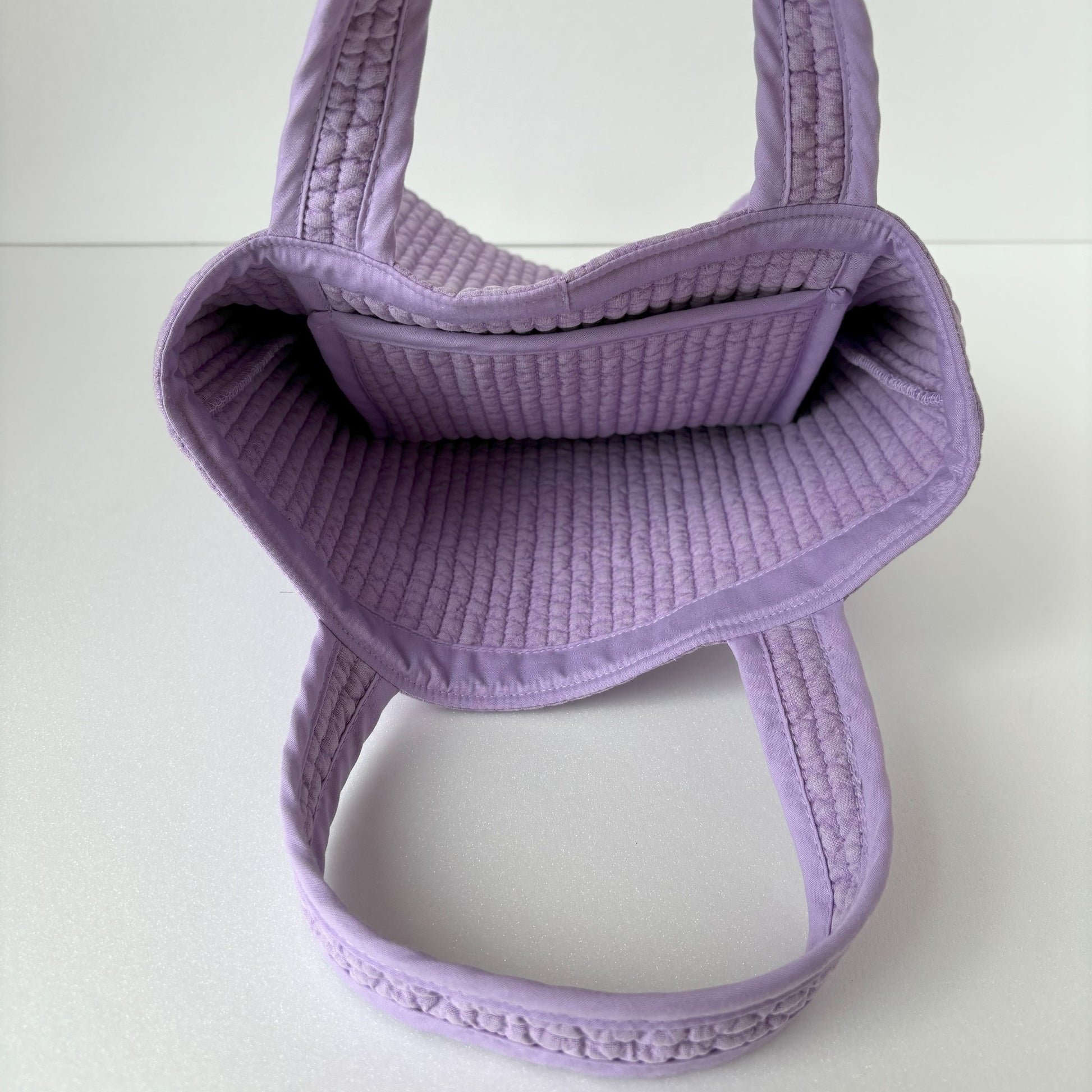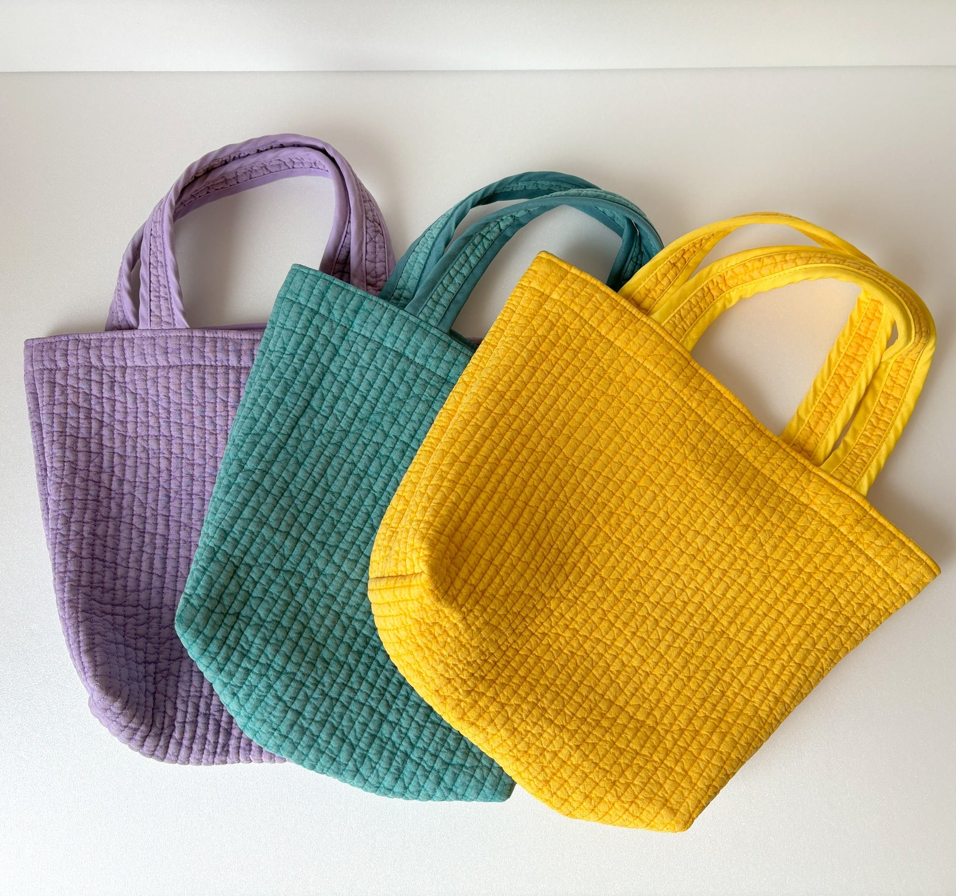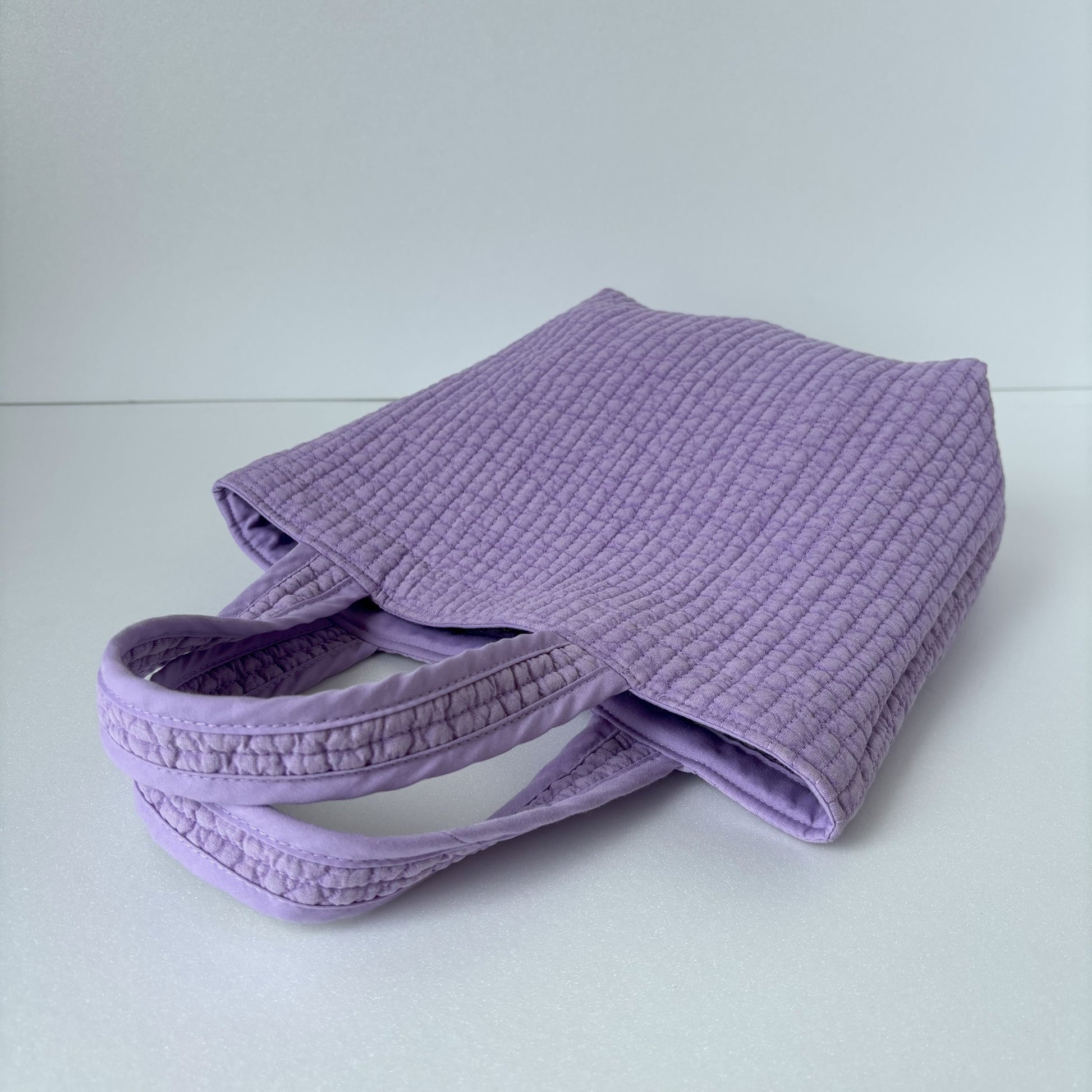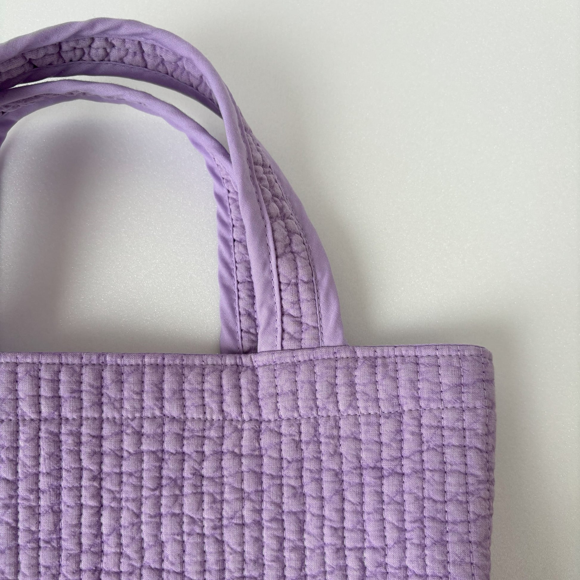 二枚の無地の生地の間に綿をはさみ合わせて等間隔で縫い合わせて作る韓国の伝統な手芸のひとつ「nubiヌビ」は、子供から大人まで幅広く生活の中で使われています。優しくてなめらかな肌触りが長く愛用したくなること間違いなしです。使いやすいトートバッグサイズは日常使いにぴったりです。気軽に洗えるのもまた良いですね。パープル/ブルー/イエローの3色。サイズ:W300×H370㎜(マチ85㎜)